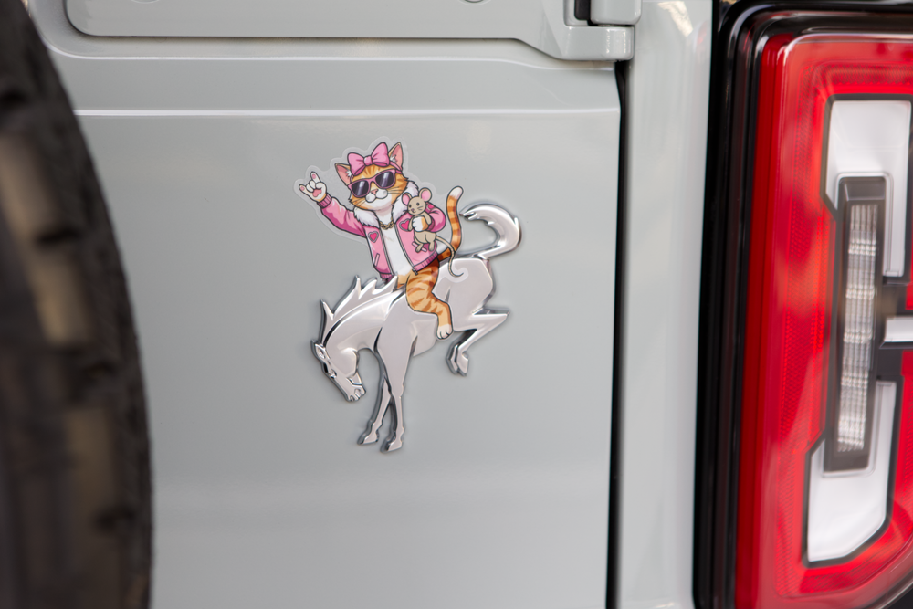We make premium rear emblem decals and accessories that let your Bronco show personality in minutes — no permanent changes, no complicated installs. From clean and classic to bold, funny, or festive, each design is made to fit right over the iconic rear emblem for an instant “outfit” change. And because the Bronco community is built on good vibes, $1 from every order is donated to a nonprofit partner.