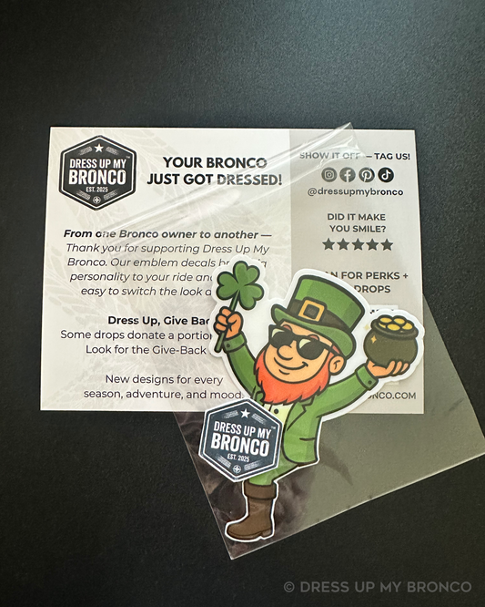 🍀 Irish You Had a Bronco — Bronco Emblem Vinyl Decal (St. Paddy’s Edition)